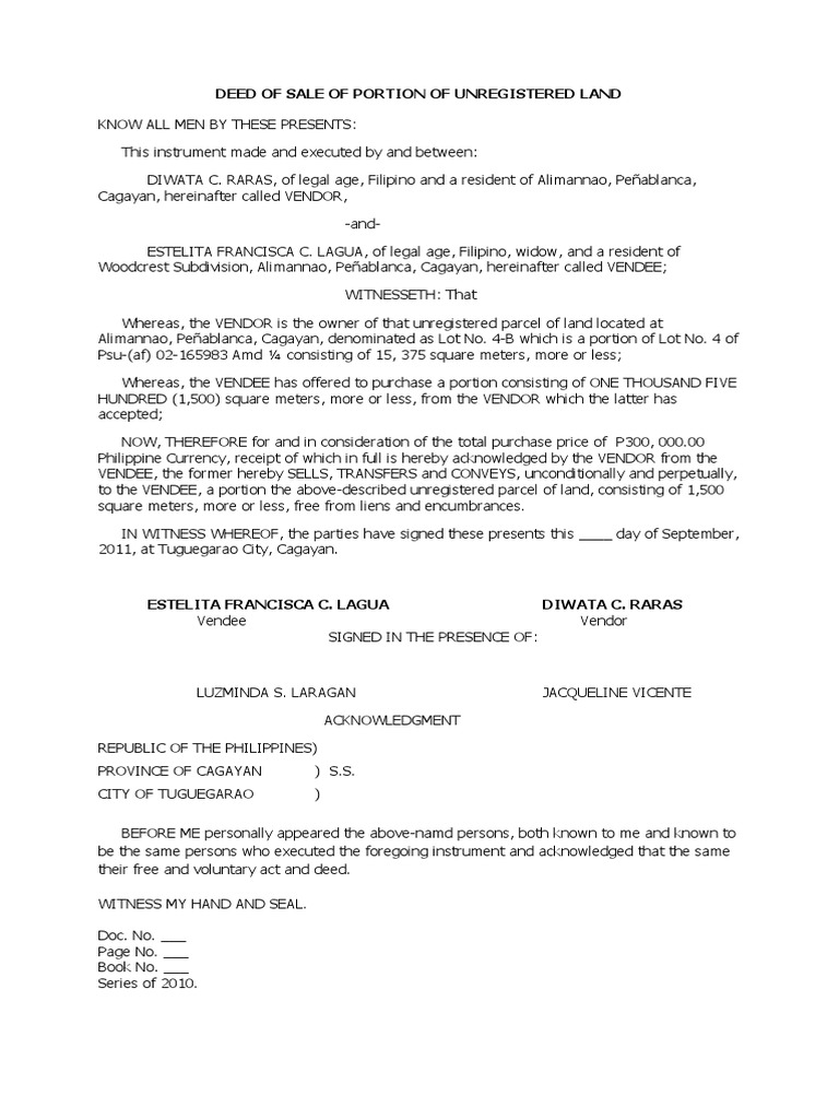 Prioritizing Your Sample Of Deed Of Sale To Get The Most Out Of Your Business. The buyer agrees to purchase a (item) for the amount of (price). What is the format of sale deed of property? We are a sharing community. And when recorded, please return this deed and tax statements to: Page | 1 deed of absolute sale know all men by these presents: